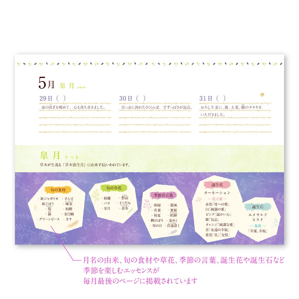 「感謝日記、歳時記、日々を楽しむエッセンス」が一つになった日記帳